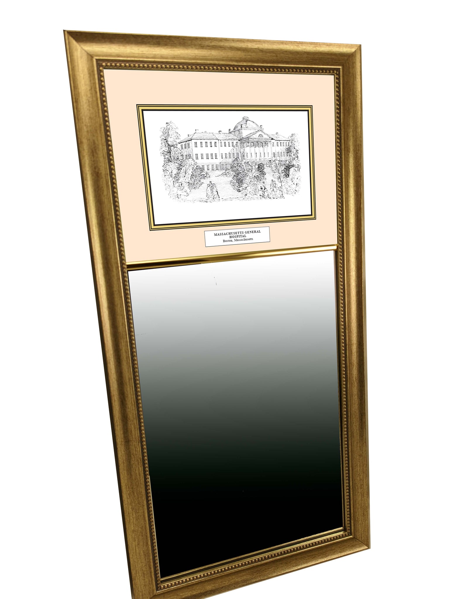 Reminiscent of the French églomisé style, our Traditional scenes offer a most distinctive and professional gift of luxury. Well suited for display in either home or office, they are a source of pride for both sender and receiver. The paperweight, most glass products and “mini” products feature school color trim. Mirrors and pictures are ready to hang. Boxes include quality brass fittings. Proudly made in America.